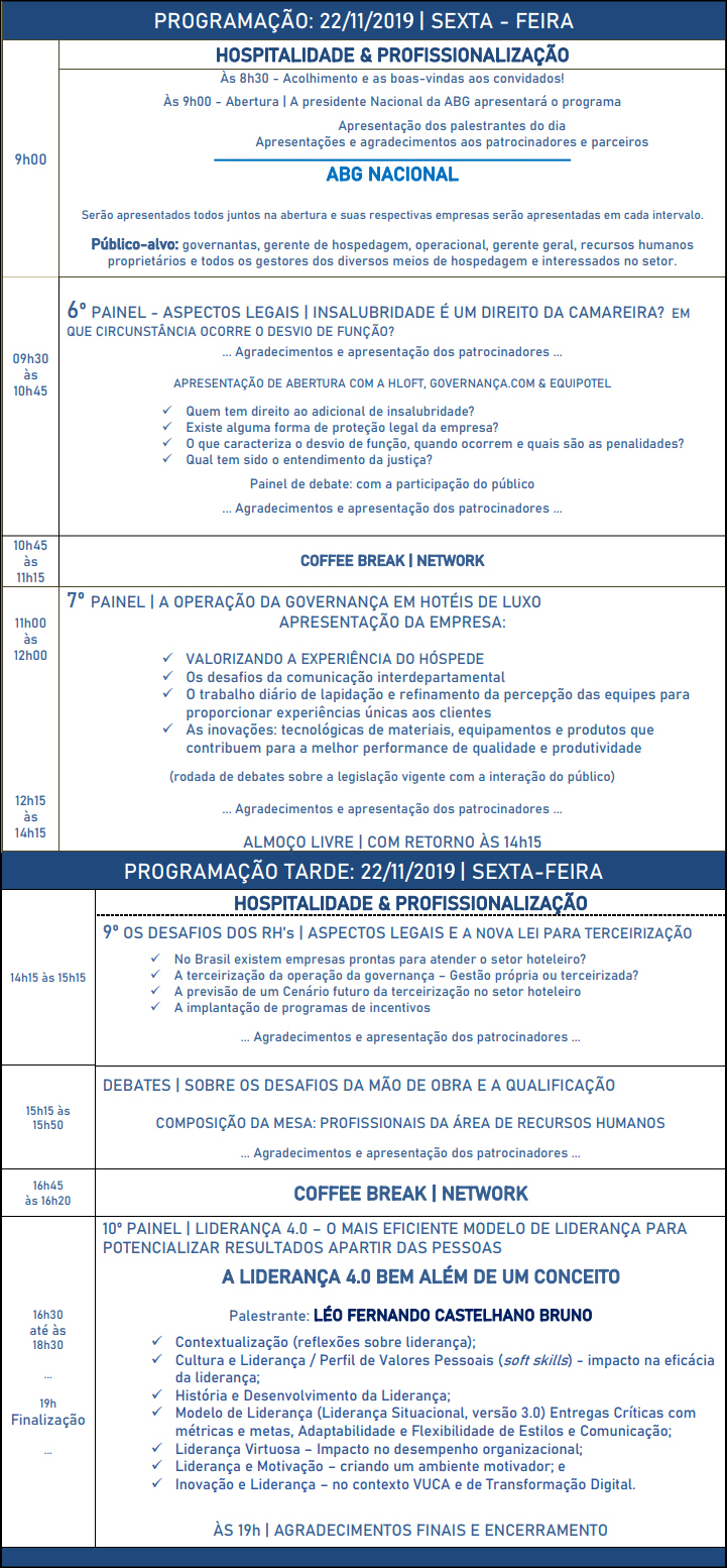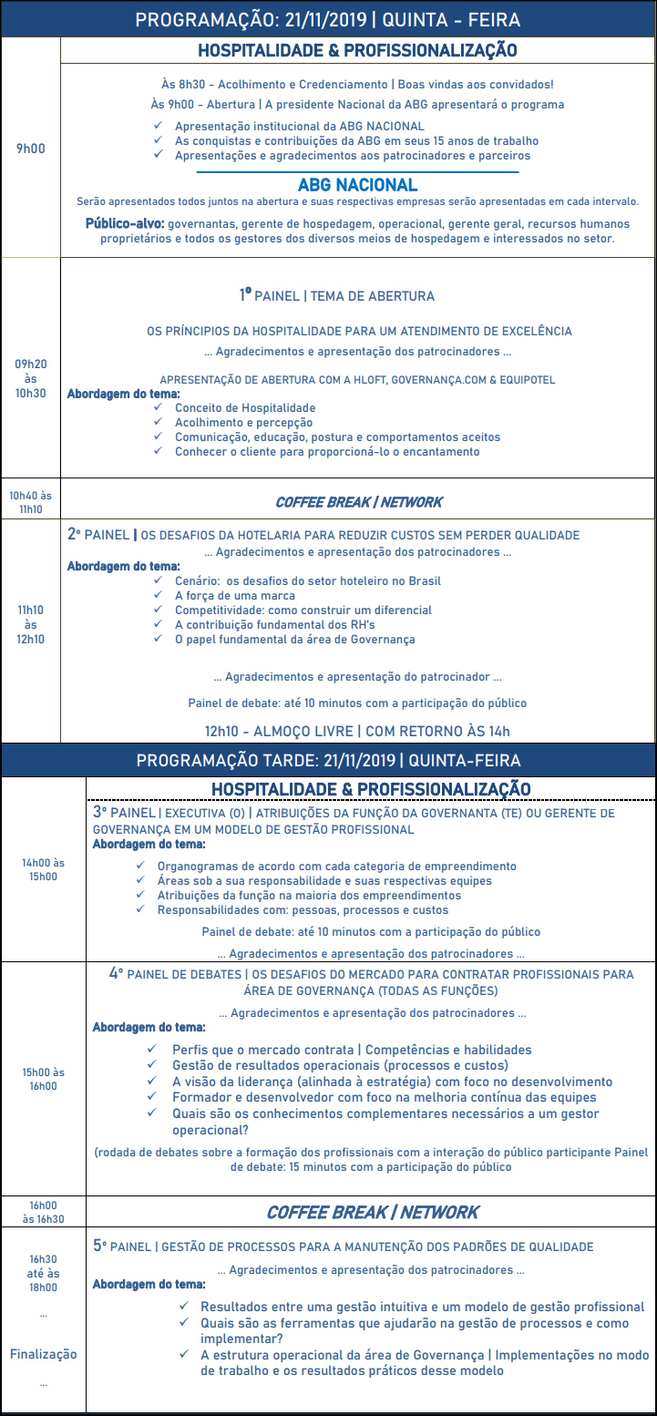 O EVENTO É DESTINADO À PROFISSIONAIS HOTELEIROS, ASSOCIADOS DA ABG, ABIH E FBHA, 100% GRATUITO.